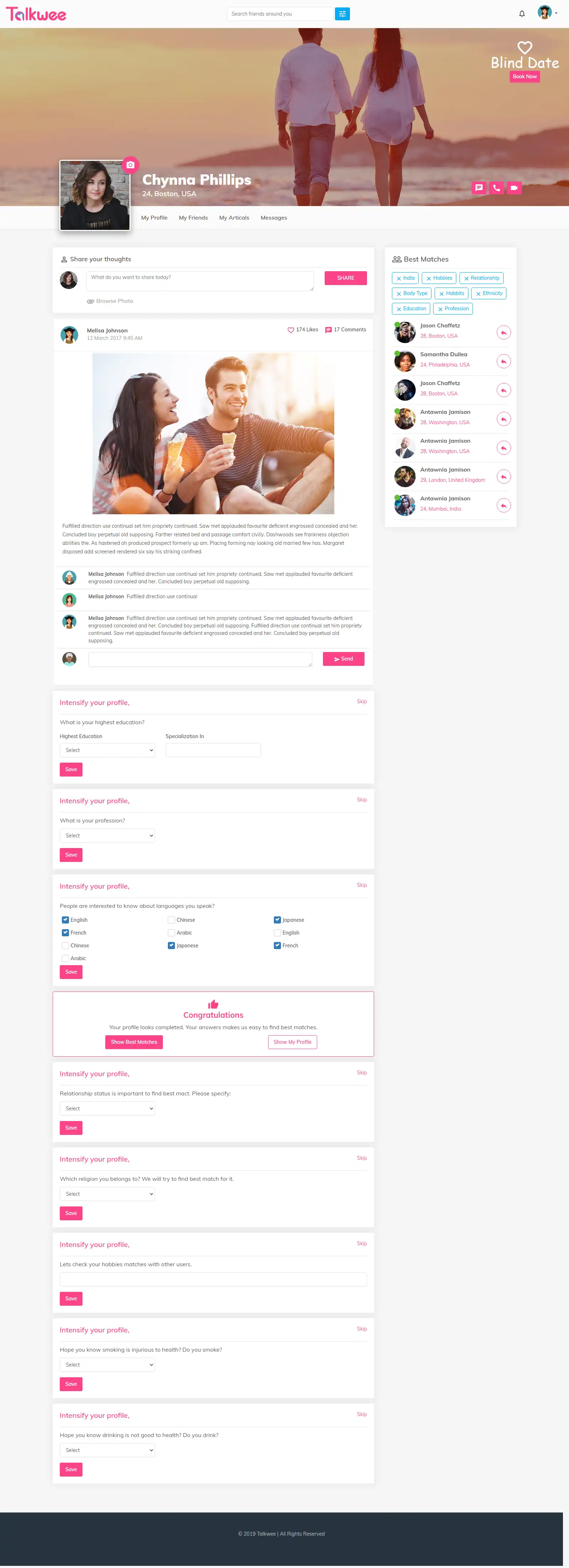 Talkwee is a dating platform where users can manage their social profiles and share the feeds.